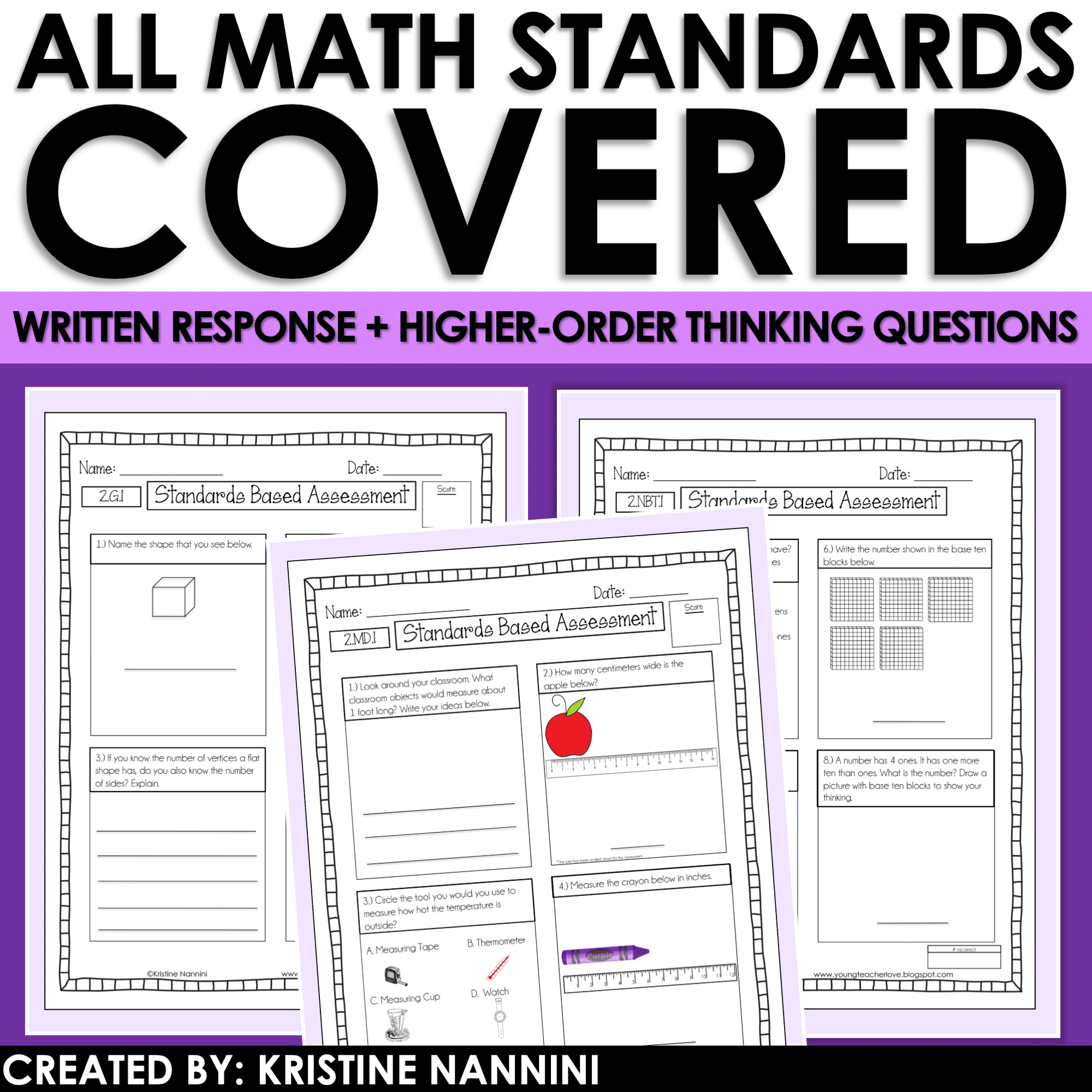 ·There are 10 higher level assessment questions for EVERY SINGLE standard under Number & Operations in Base Ten, Operations and Algebraic Thinking, Measurement and Data, and Geometry.