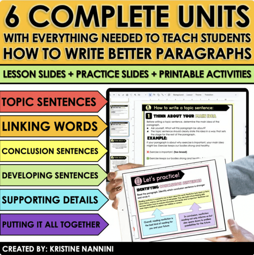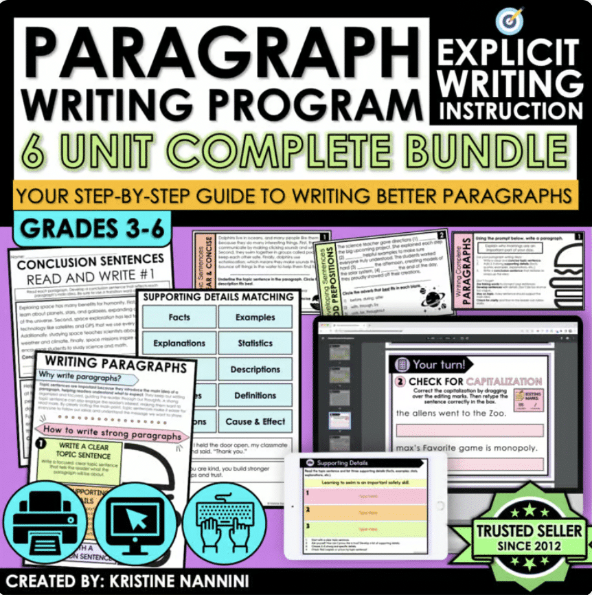 The Paragraph Writing Bundle is a comprehensive, vertically aligned writing system that builds students from foundational sentence construction to fully structured, revised, and polished paragraphs.