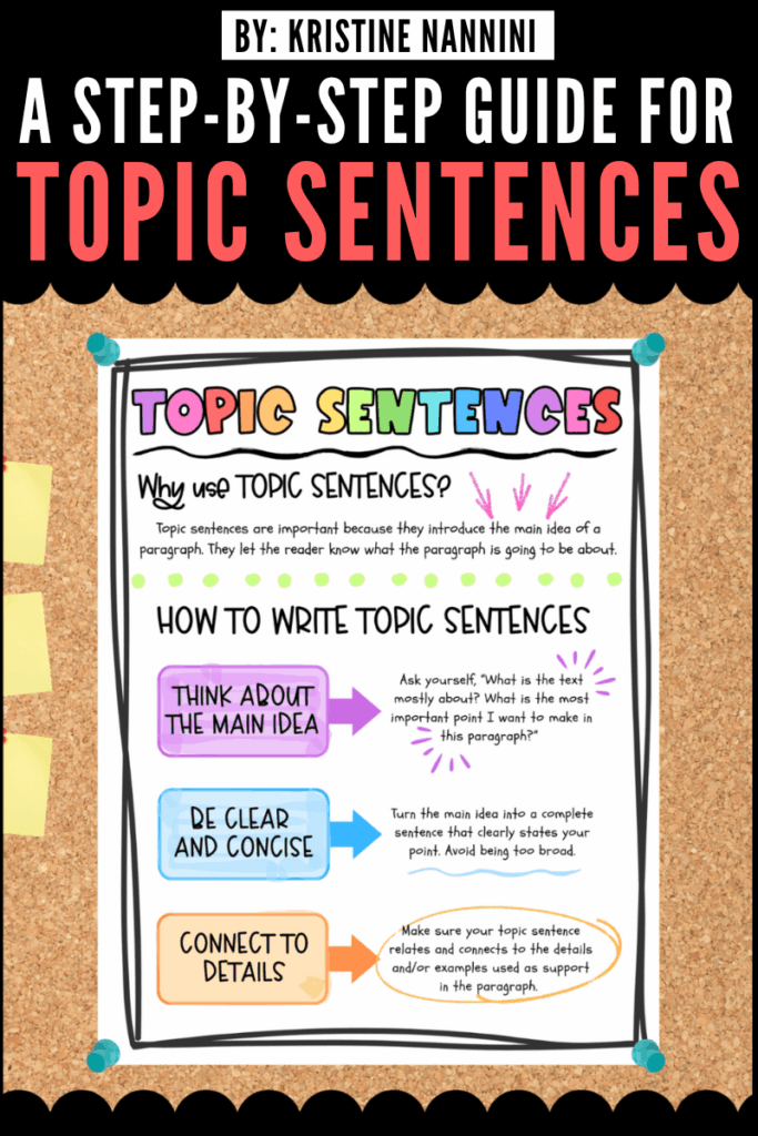 Today, I’m here to walk you through my step-by-step process for teaching topic sentences, just as you would approach a focused grammar or paragraph-writing unit. By the end, your students will have a toolkit of strategies for crafting clear, focused, and compelling topic sentences, setting them up for success in every piece of writing they produce. Grab my free How-to-Teach Guide on Topic Sentences HERE or scroll down to the end of this post.